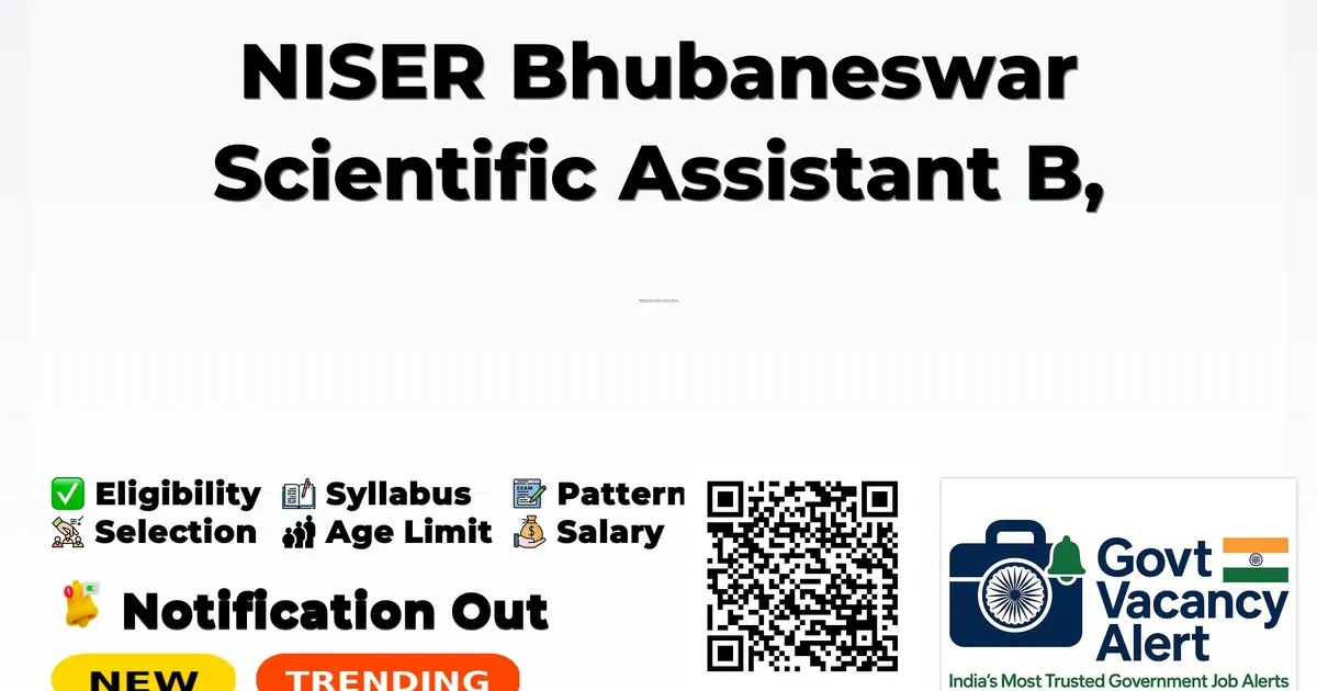 National Institute of Science Education and Research Bhubaneswar (NISER Bhubaneswar) has released an official notification for the recruitment of 03 Scientific Assistant B, Junior Hindi Translator Posts. Interested and eligible candidates can apply Online through the official NISER Bhubaneswar website. The last date to submit the application form is 17-12-2025. In this article, you’ll find the NISER Bhubaneswar Scientific Assistant B, Junior Hindi Translator Posts recruitment details, including eligibility criteria, age limit, salary structure, selection process, application steps, and direct links to the official notification and Online application form.