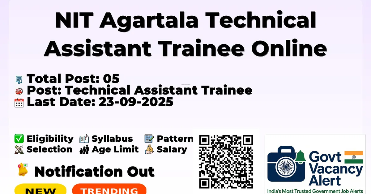 The NIT Agartala Technical Assistant Trainee Recruitment 2025 Notification PDF has been released on 12-09-2025 at nita.ac.in. Check the complete job details, vacancy, age limit, application fee, selection process and how to apply from the article. You can Check all Latest Sarkari Result Updates of All Central Government Jobs and State Government Jobs.