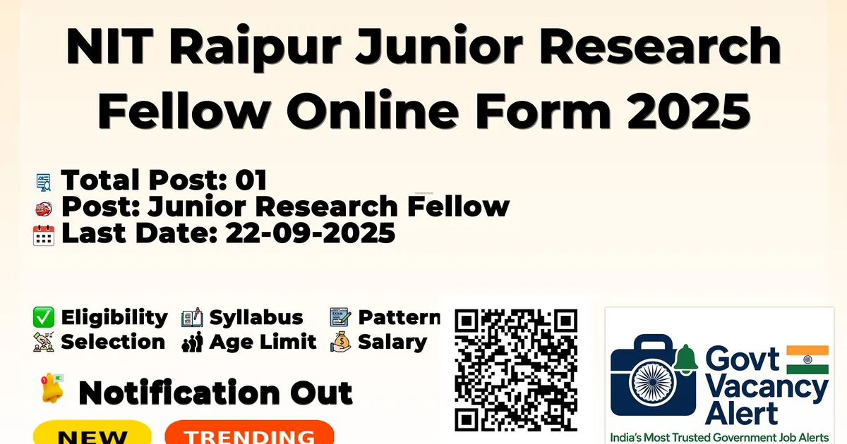 The NIT Raipur Junior Research Fellow Recruitment 2025 Notification PDF has been released on 11-09-2025 at nitrr.ac.in. Check the complete job details, vacancy, age limit, application fee, selection process and how to apply from the article. You can Check all Latest Sarkari Result Updates of All Central Government Jobs and State Government Jobs.