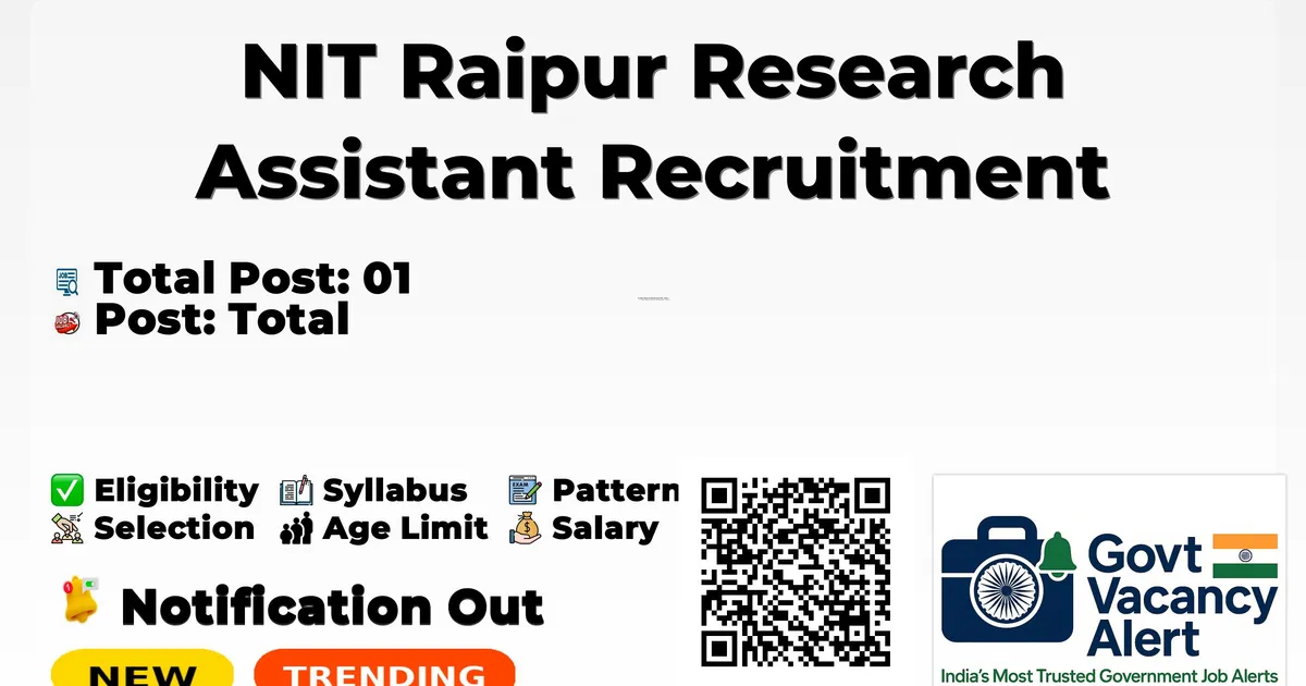 National Institute of Technology Raipur (NIT Raipur) Research Assistant Vacancy 2025 |