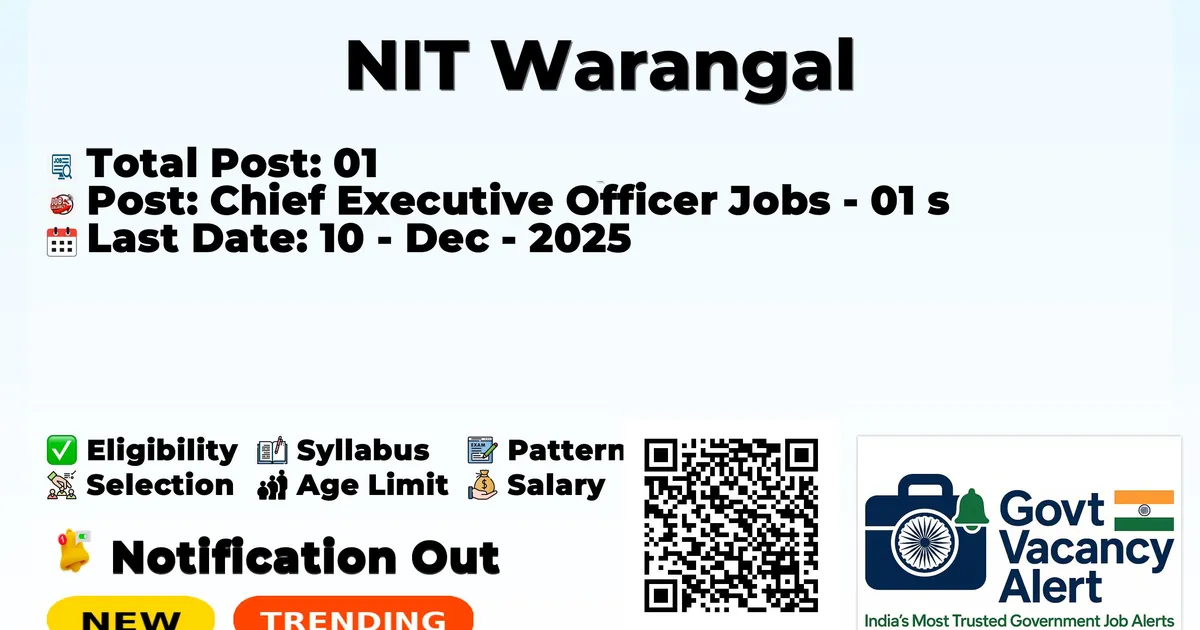 National Institute of Technology Warangal (NIT Warangal) has declared the official notification for 2025. To fill up the vacancies for the Chief Executive Officer Jobs. Those candidates who have qualified in the B.E/ B.Tech. and MBA can grab this chance and apply for the NIT Warangal Recruitment 2025. Here, we include the age limit, selection process, salary structure, education details, application fee, and how to apply for these posts.