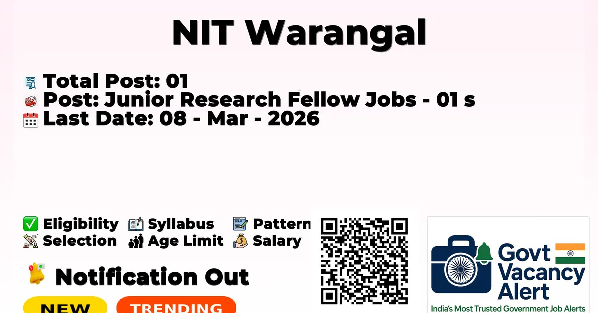 NIT Warangal — Junior Research Fellow Jobs - 01 Posts