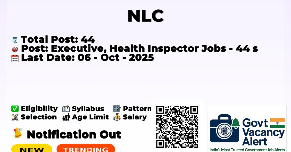 The Neyveli Lignite Corporation Limited (NLC) has officially released the notiifcation to fill the vacancies of 44 Executive, Health Inspector Posts. Interested and eligible candidates can use this opportunity to apply for these posts before the last date of application. Candidates who have completed their 12th, Diploma, B.E./B. Tech in Civil, Electrical, and Mechanical Engineering can apply for the NLC Recruitment 2025. The interested applicants can apply in online mode. Here we have mentioned the education details, age limit, selection process, application fee, salary, and how to apply for these posts before the deadline. The application dates have already begun.