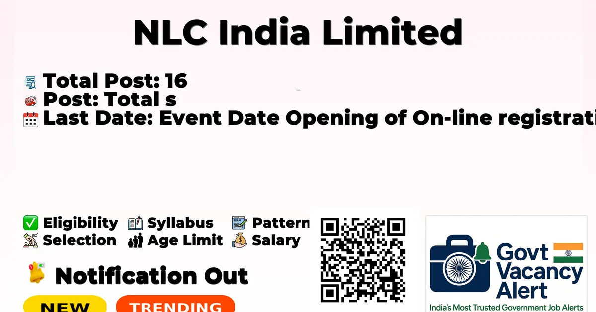 Company Name NLC India Limited Post Name Health Inspector No of Posts 16 Advt No 02/2026 Salary ₹ 38,000/- per month Qualification 12th-pass, Diploma, Any Graduate Age Limit UR: 30, OBC(NCL): 33, SC: 35, ST: 30 Last Date 02-04-2026 Apply Mode Online Job Type Contract