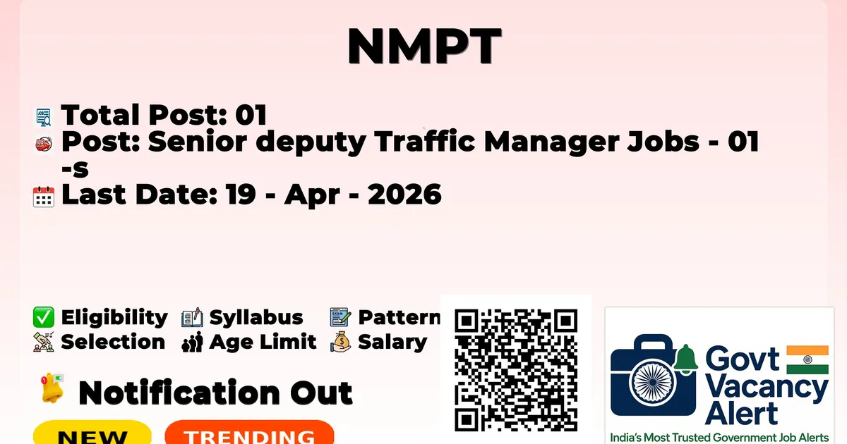 The New Mangalore Port Trust (NMPT) has officially released the notification to fill the vacancies of 01 Senior Deputy Traffic Manager Posts. Interested and eligibile candidates can use this opportunity to apply for these posts before the last date of application. Candidates who have completed any degree can apply for the NMPT Notification 2026. The interested applicants can apply in online mode. Here we have mentioned the education details, age limit, selection process, application fee, salary, and how to apply for these posts before the deadline. The application dates have already begun.