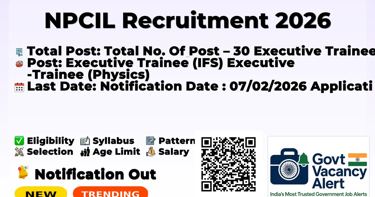 Dear friends, Nuclear Power Corporation of India (NPCIL) has released NPCIL Recruitment 2026. All the candidates who like government job can see the PDF of NPCIL Notification 2026. Eligible and interested candidates can apply for this job before the last date. Candidates read this article till the end to get the dates, qualifications, age limit, fees, application and other information of NPCIL Recruitment Online Form 2026.