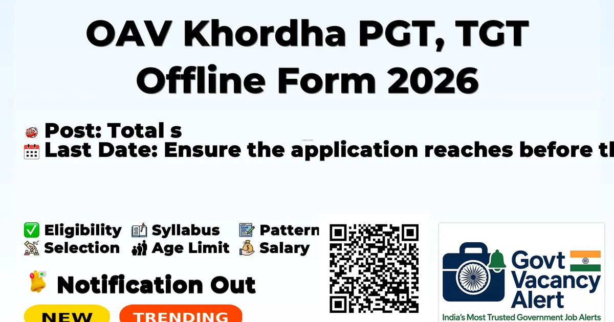 Odisha Adarsha Vidyalayas Khordha (OAV Khordha) has released an official notification for the recruitment of PGT, TGT Posts. Interested and eligible candidates can apply Offline through the official OAV Khordha website. The last date to submit the application form is 02-03-2026. In this article, you’ll find the OAV Khordha PGT, TGT Posts recruitment details, including eligibility criteria, age limit, salary structure, selection process, application steps, and direct links to the official notification and Offline application form.