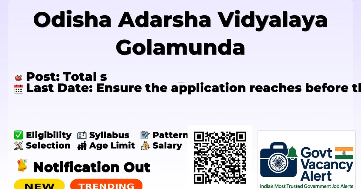Odisha Adarsha Vidyalaya Golamunda (OAV Golamunda) has released an official notification for the recruitment of 01 Cook Assistant Posts. Interested and eligible candidates can apply Offline through the official OAV Golamunda website. The last date to submit the application form is 25-02-2026. In this article, you’ll find the OAV Golamunda Cook Assistant Posts recruitment details, including eligibility criteria, age limit, salary structure, selection process, application steps, and direct links to the official notification and Offline application form.