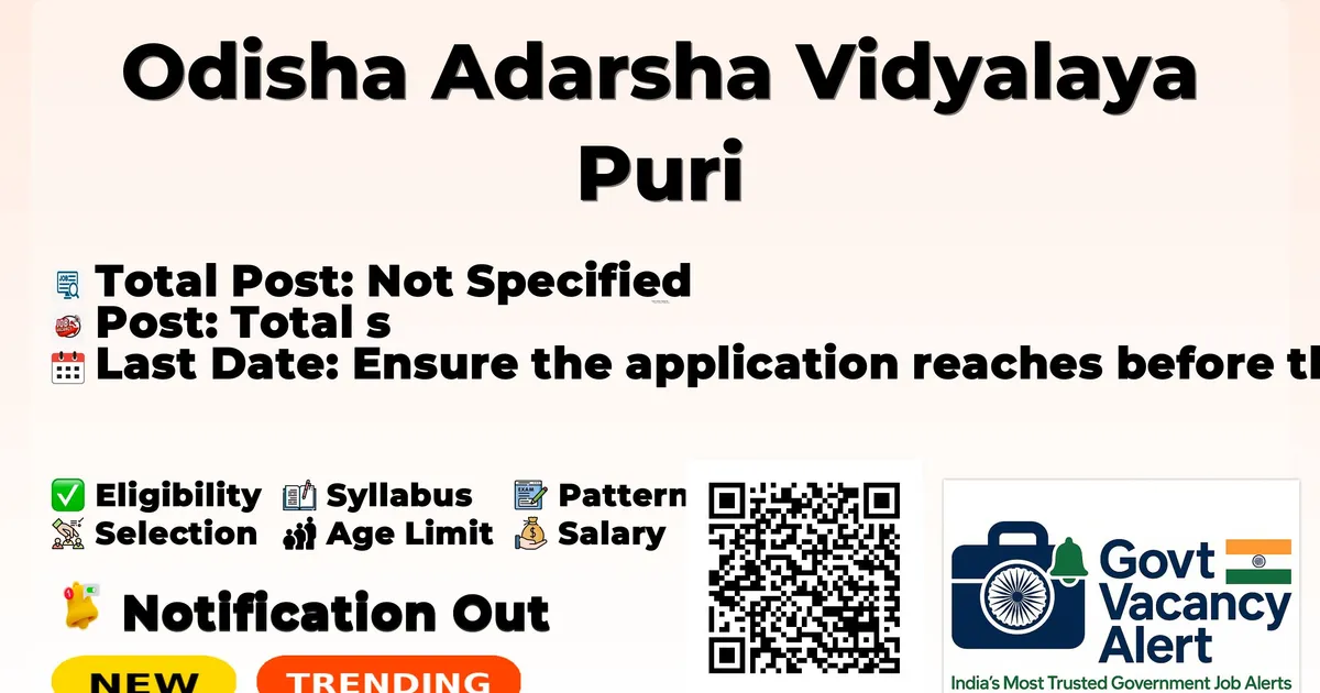 Odisha Adarsha Vidyalaya Puri (OAV Puri) Recruitment 2026: Odisha Adarsha Vidyalaya Puri has released the official notification for Part-Time Teachers posts, inviting applications from eligible candidates. This recruitment provides an excellent opportunity for candidates seeking stable and well-paid education jobs.
