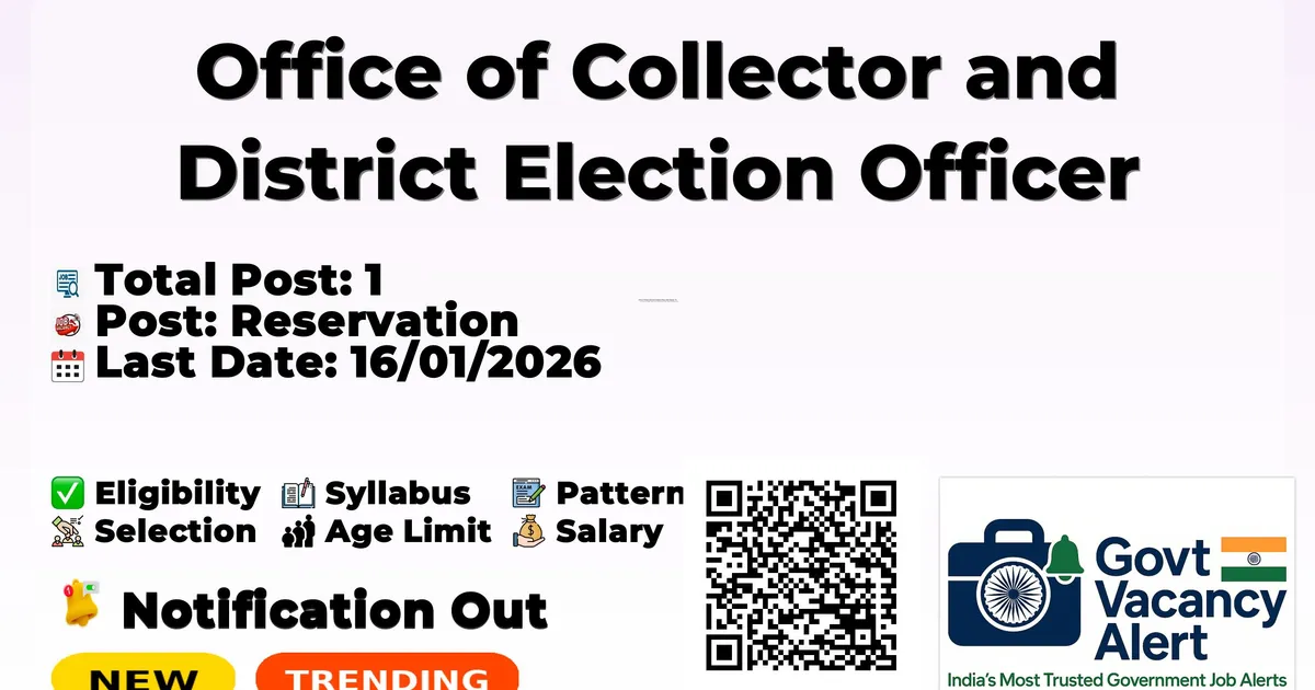 District Election Office Datia has released an official notification for the recruitment of 01 Data Entry Operator Posts. Interested and eligible candidates can apply Offline through the official District Election Office Datia website. The last date to submit the application form is 16-01-2026. In this article, you’ll find the District Election Office Datia Data Entry Operator Posts recruitment details, including eligibility criteria, age limit, salary structure, selection process, application steps, and direct links to the official notification and Offline application form.