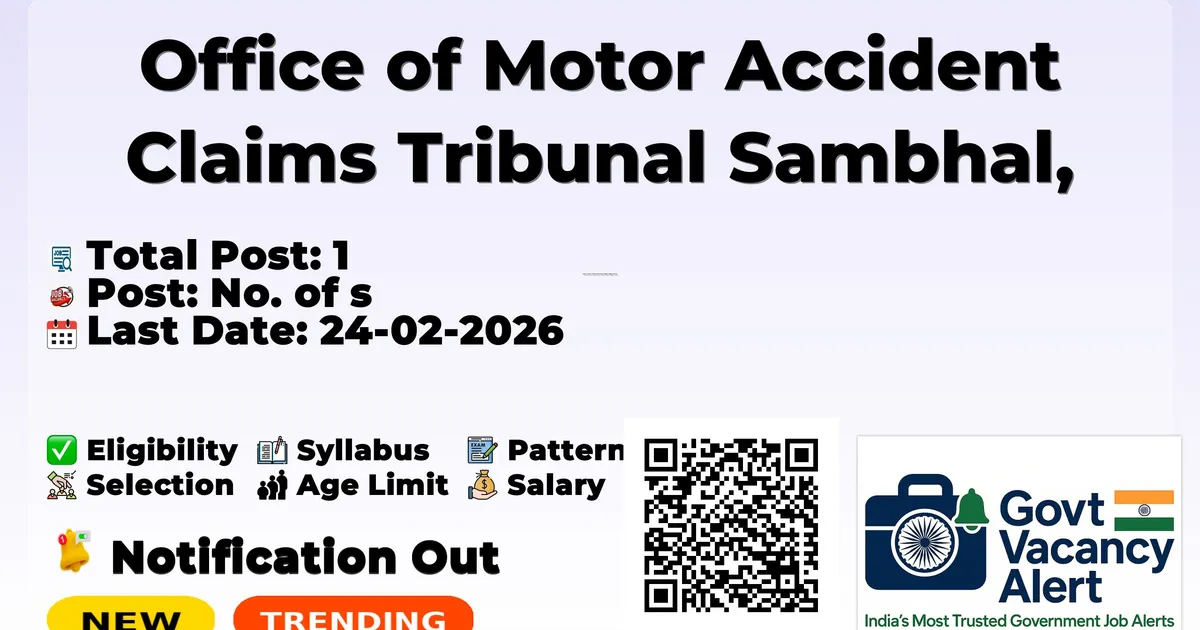 Motor Accident Claims Tribunal Sambhal (MACT Sambhal) has released an official notification for the recruitment of 01 Reader/ Junior Assistant Posts. Interested and eligible candidates can apply Offline through the official MACT Sambhal website. The last date to submit the application form is 24-02-2026. In this article, you’ll find the MACT Sambhal Reader/ Junior Assistant Posts recruitment details, including eligibility criteria, age limit, salary structure, selection process, application steps, and direct links to the official notification and Offline application form.