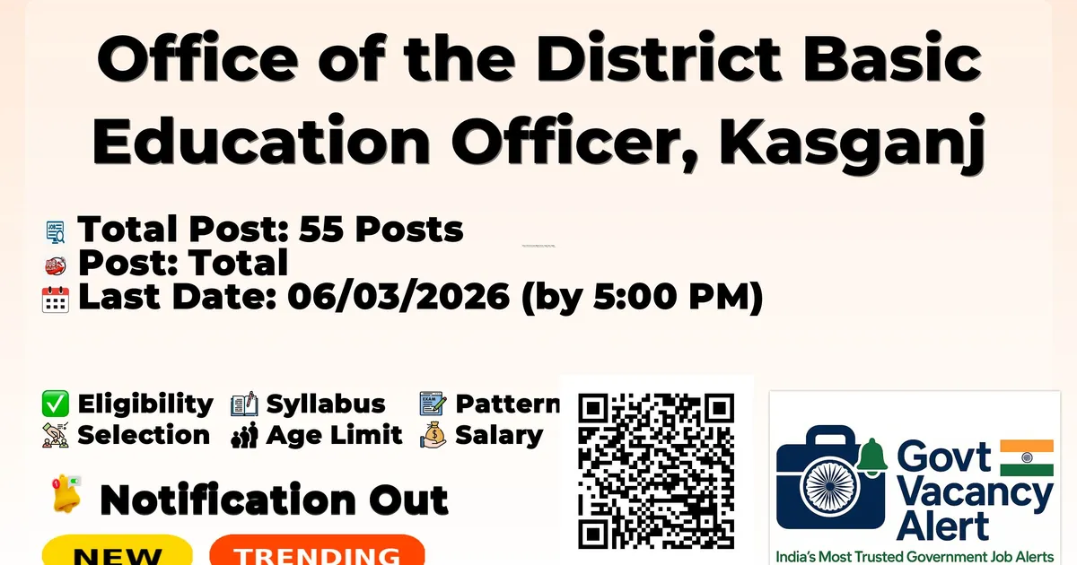 Office of the District Basic Education Officer, Kasganj (BSA Kasganj) Kasturba Gandhi Awasiya Balika Vidyalaya (KGBV) Notification 2026 has been released on 10-02-2026 on the official website https://kasganj.nic.in/. A total of 55 vacancies have been announced through the BSA Kasganj KGBV Recruitment 2026.