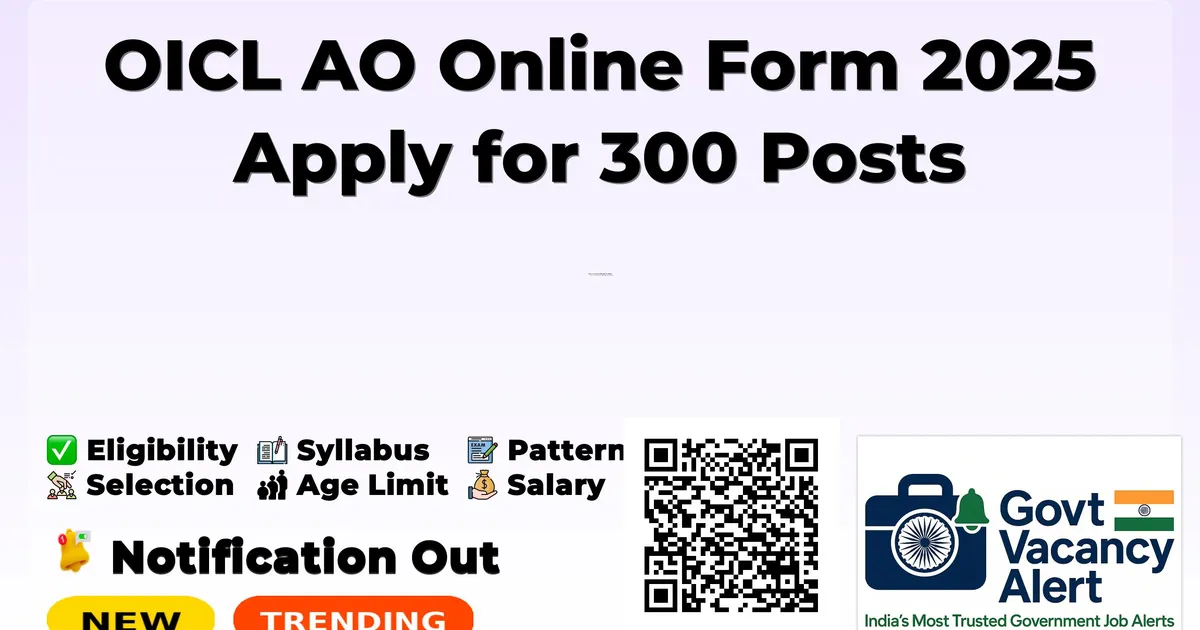OICL AO Online Form 2025 Apply for 300 Posts — Latest Government Job