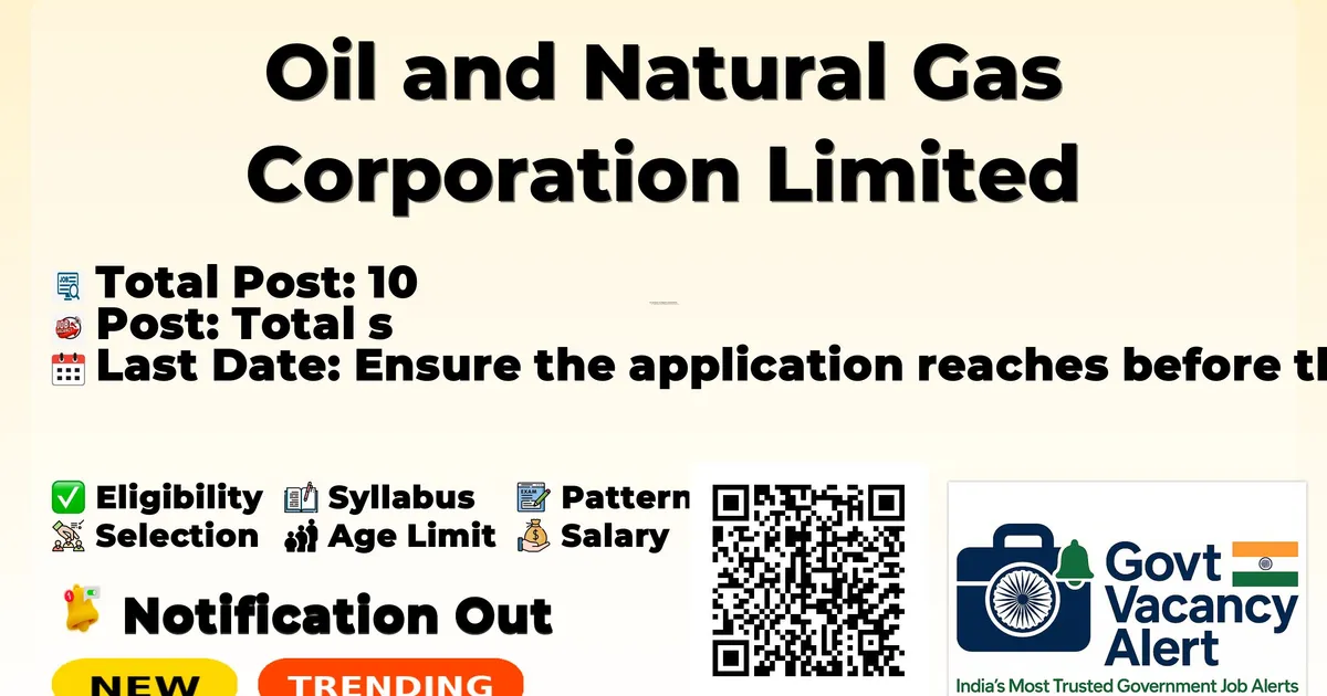 Company Name Oil and Natural Gas Corporation Limited (ONGC) Post Name Associate Consultant No of Posts 10 Advt No 01/2026 Salary Rs. 66,000/- Per Month Qualification Diploma Age Limit Up to 63 years Last Date 15 March 2026 Apply Mode Email|Offline Job Type Contract