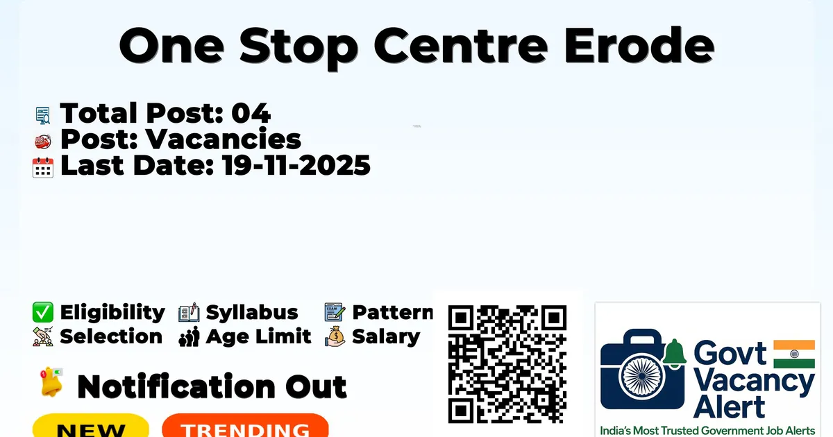 One Stop Centre Erode has released an official notification for the recruitment of 04 Senior Consultant, Information Technology Worker and Other Posts. Interested and eligible candidates can apply Offline through the official One Stop Centre Erode website. The last date to submit the application form is 19-11-2025. In this article, you’ll find the One Stop Centre Erode Senior Consultant, Information Technology Worker and Other Posts recruitment details, including eligibility criteria, age limit, salary structure, selection process, application steps, and direct links to the official notification and Offline application form.