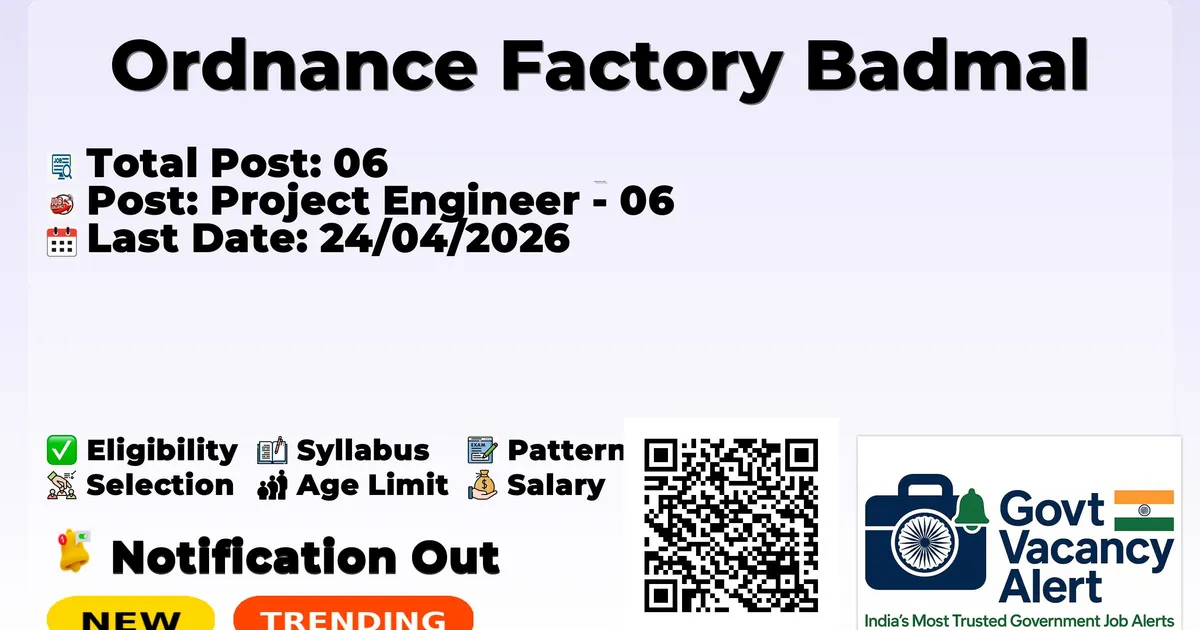 Must have completed Apprenticeship Training in Chemical Trade in Ordnance Factories (Munitions India Ltd.) OR in industries dealing with manufacturing/handling of ammunition & explosives |