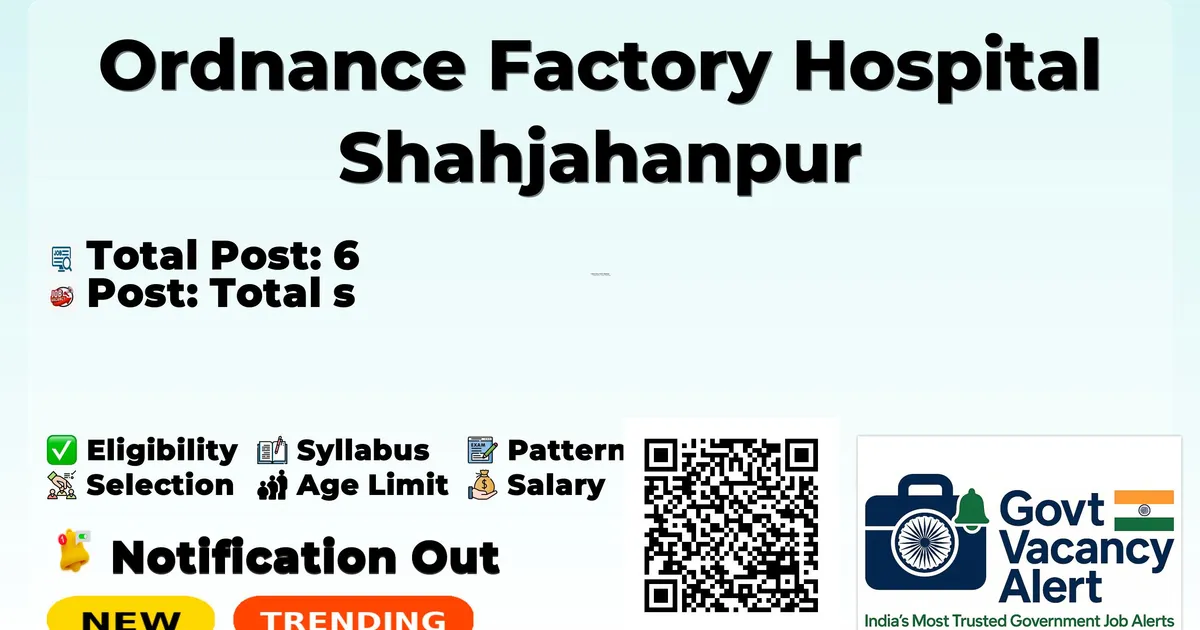 Ordnance Factory Hospital Shahjahanpur Recruitment 2026: Ordnance Factory Hospital Shahjahanpur is conducting a Walk-in Interview for 6 Hired Medical Practitioner posts. This recruitment provides an excellent opportunity for eligible candidates to attend the interview directly without any prior online application. The Walk-in Interview is scheduled on 14-03-2026. Candidates are strongly advised to report at the venue with all required documents well before the scheduled time. Below, you can find complete details of Hired Medical Practitioner Walk-in Recruitment 2026, including vacancy breakdown, eligibility, age limit, salary, walk-in schedule, venue, and important links. Advertisement Company Name Ordnance Factory Hospital Shahjahanpur Post Name Hired Medical Practitioner (MBBS Doctor) No of Posts 6 Salary Rs. 75000/- Per Month Qualification MBBS Degree, Recognized by MCI. Age Limit Max: 70 years Walk-in Date 14 March 2026 Apply Mode Walk-in Job Type Contract Candidates should download and read the Ordnance Factory Hospital Shahjahanpur Jobs 2026 notification PDF carefully to check vacancy details, eligibility, age limit, and application instructions. The notification also includes important dates and selection process details. The direct download link is available in the Important Links section below. Download Ordnance Factory Hospital Shahjahanpur Hired Medical Practitioner Job 2026 Notification PDF Post Name Total Posts Hired Medical Practitioner (MBBS Doctor) 6 Total 6 Trending Govt Jobs Indian Navy Agniveer SSR, MR & SSR (Medical) Online Form 2026 IDBI Bank Junior Assistant Manager Online Form 2026 SSB Odisha Junior Assistant and Junior Clerk Online Form 2026 Indian Army Agniveer Recruitment Rally Notification 2026 AIIMS NORCET 10 Online Form 2026 MBBS Degree from a recognized institution. Must be registered with the Medical Council of India (MCI). Category Fee General/OBC Nil SC/ST Nil Maximum Age Limit: 70 years. No age relaxation details are mentioned in the official notification. Rs. 75000/- Per Month (Consolidated) Event Date Walk-in Interview 14 March 2026 Walk-in Interview Candidates who wish to attend the walk-in interview for Ordnance Factory Hospital Shahjahanpur Hired Medical Practitioner Recruitment 2026 should follow the steps below. Read the official notification carefully before attending the interview. Candidates must report at the venue as per the reporting time mentioned in the notification. Carry all original documents along with one set of self-attested photocopies such as ID proof, educational certificates, experience certificates (if required), and category certificate (if applicable). Bring the duly filled application form if required in the notification. Verify eligibility criteria before attending the interview. Candidates are advised to reach the venue well in advance to complete registration formalities. Keep extra passport-size photographs for submission if required. Official Notification PDF Click here Official Website Click here