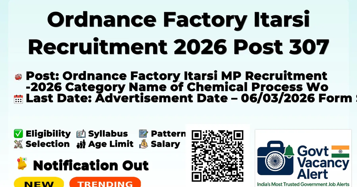 Ordnance Factory Itarsi Recruitment 2026 Post 307