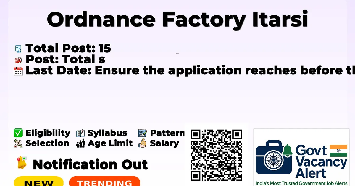 Candidates should download and read the Ordnance Factory Itarsi Jobs 2026 notification PDF carefully to check vacancy details, eligibility, age limit, and application instructions. The notification also includes important dates and selection process details. The direct download link is available in the Important Links section below.