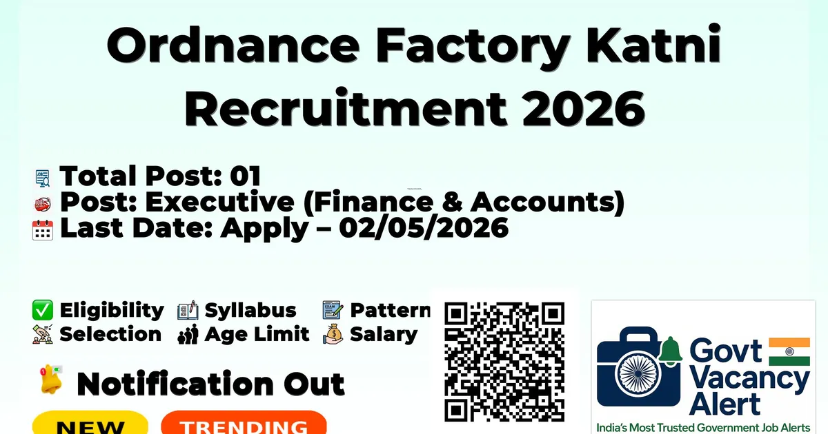Interested and eligible candidates can apply offline through the prescribed application format. The Applicant needs to send the application form along with relevant self-attested documents to the The Executive Director, Ordnance Factory Katni,Dist- Katni (M.P.) Pin-483504,Unit of Yantra India Limited on or before 02-May-2026