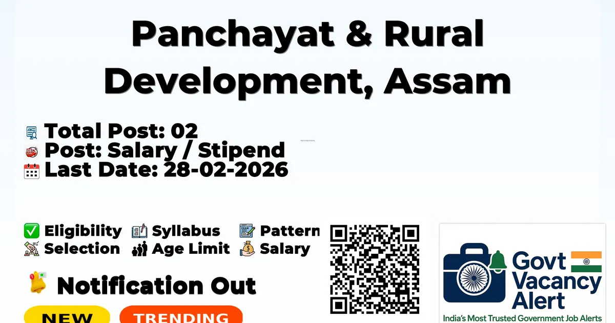 Company Name Panchayat & Rural Development, Assam (P&RD Assam) Post Name Accounts Officer, IT Assistant No of Posts 02 Advt No E.No:577222/I/1432135/2026 Salary Accounts Officer: Rs.38,000/- Per Month IT Assistant: Rs.30,000/- Per Month Qualification M.Com / MBA (Finance) / BCA / B.Sc (CS/IT) Age Limit 21 to 38 years Notification Date 10-02-2026 Start Date for Apply 13-02-2026 Last Date for Apply 28-02-2026 Apply Mode Online Job Type Temporary / Contractual Official Website https://rural.assam.gov.in