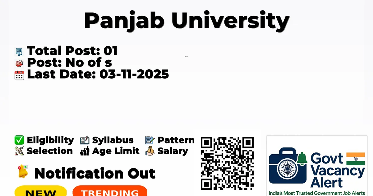 Panjab University has released an official notification for the recruitment of 01 Guest Faculty Posts. Interested and eligible candidates can apply Offline through the official Panjab University website. The last date to submit the application form is 03-11-2025. In this article, you’ll find the Panjab University Guest Faculty Posts recruitment details, including eligibility criteria, age limit, salary structure, selection process, application steps, and direct links to the official notification and Offline application form.