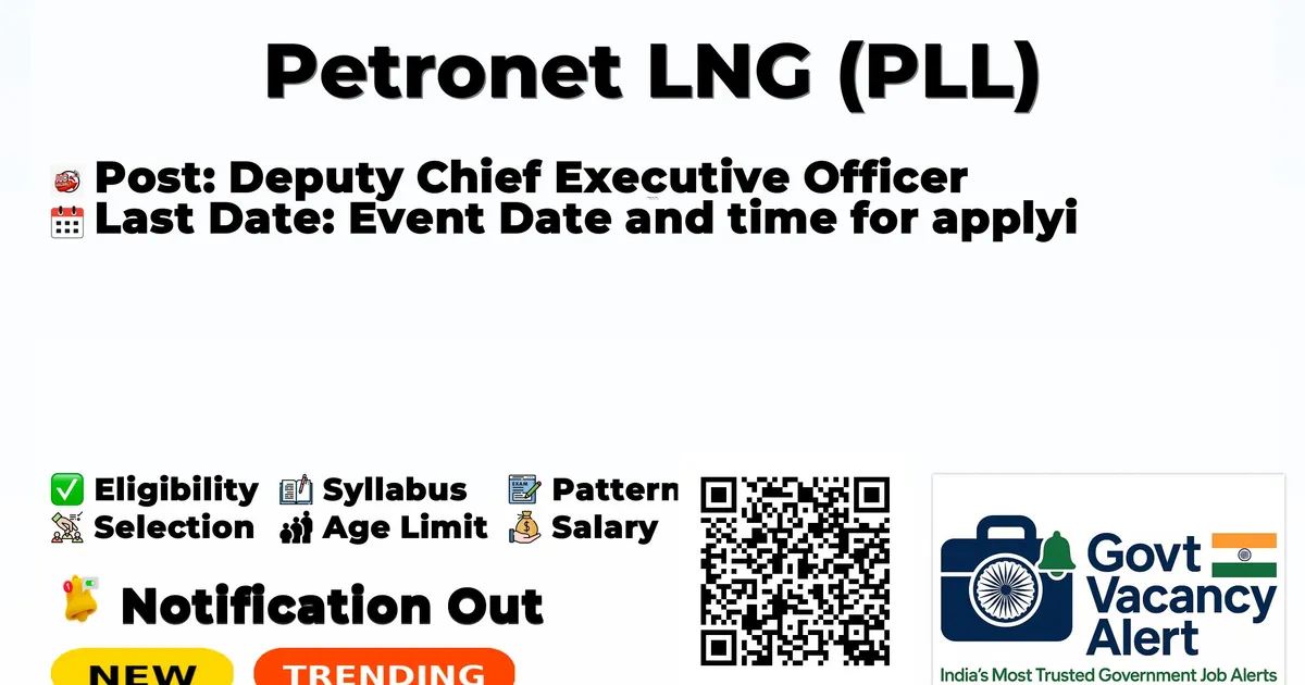 Petronet LNG (PLL) has released the Deputy Chief Executive Officer Recruitment 2026 notification for senior executive-level post, offering a prestigious opportunity for experienced professionals seeking high-level PSU leadership roles in the energy and infrastructure sector.