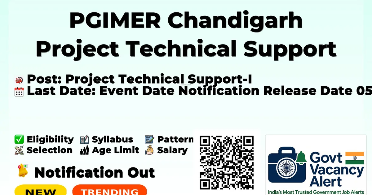 Postgraduate Institute of Medical Education and Research Chandigarh (PGIMER Chandigarh) has released an official notification for the recruitment of 01 Project Technical Support 1 Posts. Interested and eligible candidates can apply Offline through the official PGIMER Chandigarh website. The last date to submit the application form is 12-01-2026. In this article, you’ll find the PGIMER Chandigarh Project Technical Support 1 Posts recruitment details, including eligibility criteria, age limit, salary structure, selection process, application steps, and direct links to the official notification and Offline application form.