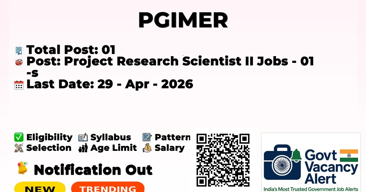 Postgraduate Institute of Medical Education and Research (PGIMER) has released an official notification for 2026. To fill up the various vacancies for the Project Research Scientist II Jobs. Candidates who have qualified for any degree can grab this opportunity and apply for the PGIMER Recruitment 2026. Here we provided more details about the age limit, selection process, salary structure, education details, applciation fee, and how to apply for these posts.