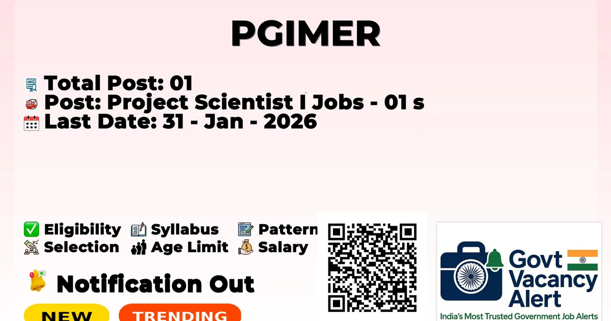 Postgraduate Institute of Medical Education and Research (PGIMER) has delivered the official notification for 2026. To fill up the vacancies for Project Scientist I Jobs. Those candidates who have qualified in the M.Sc, M.Tech, M.Pharm, and Ph.D can grab this chance and apply for the PGIMER Recruitment 2026. Interested candidates can apply before the last date of application. For more details, like the age limit, selection process, salary structure, education details, application fee, and how to apply for the posts mentioned below.