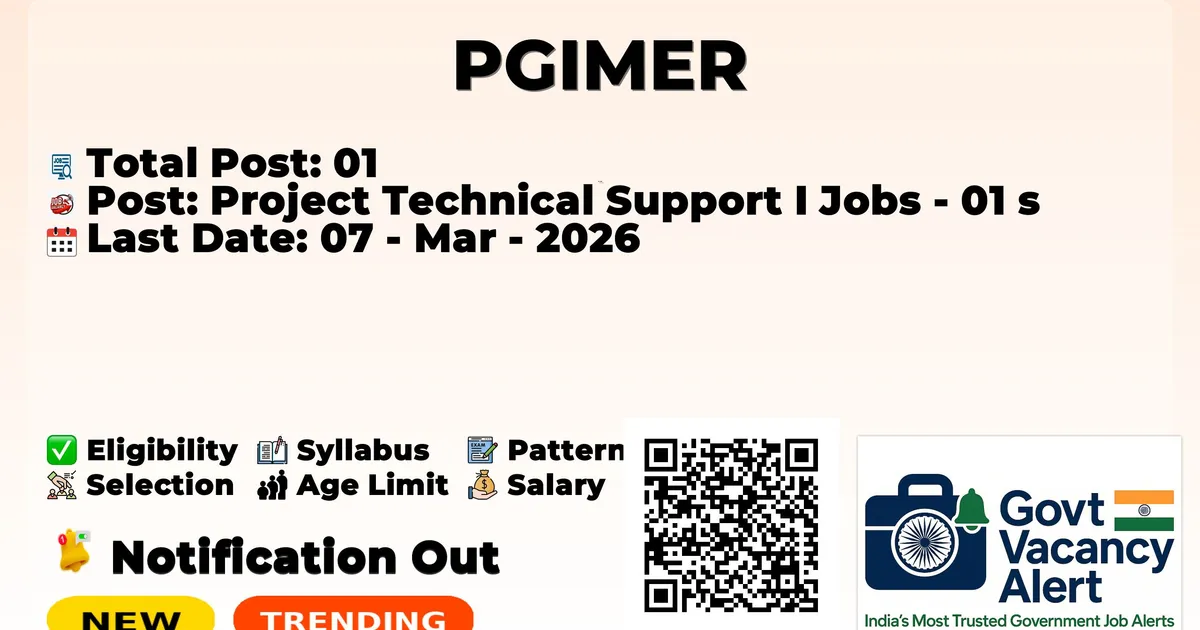 Postgraduate Institute of Medical Education and Research (PGIMER) has released an official notification for the recruitment of Project Technical Support I Jobs. Candidates who have qualified in the 10th Pass or Diploma can grab this chance and apply for the PGIMER Recruitment 2026. Here, we included more details about the age limit, selection process, salary structure, education details, application fee, and how to apply for these posts.