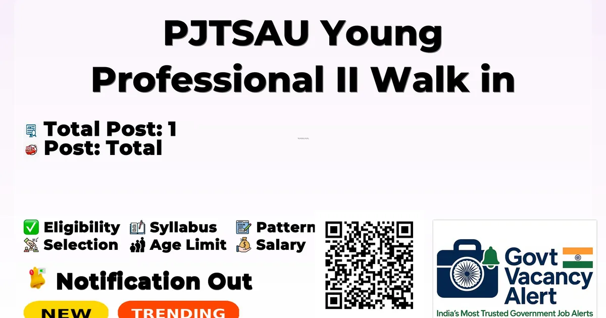 Professor Jayashankar Telangana State Agricultural University (PJTSAU) Recruitment 2025 for 1 posts of Young Professional II. Candidates with M.Sc Can attend the walkin. The Walk-in on 31-10-2025. For detailed information please visit PJTSAU official website, pjtau.edu.in.