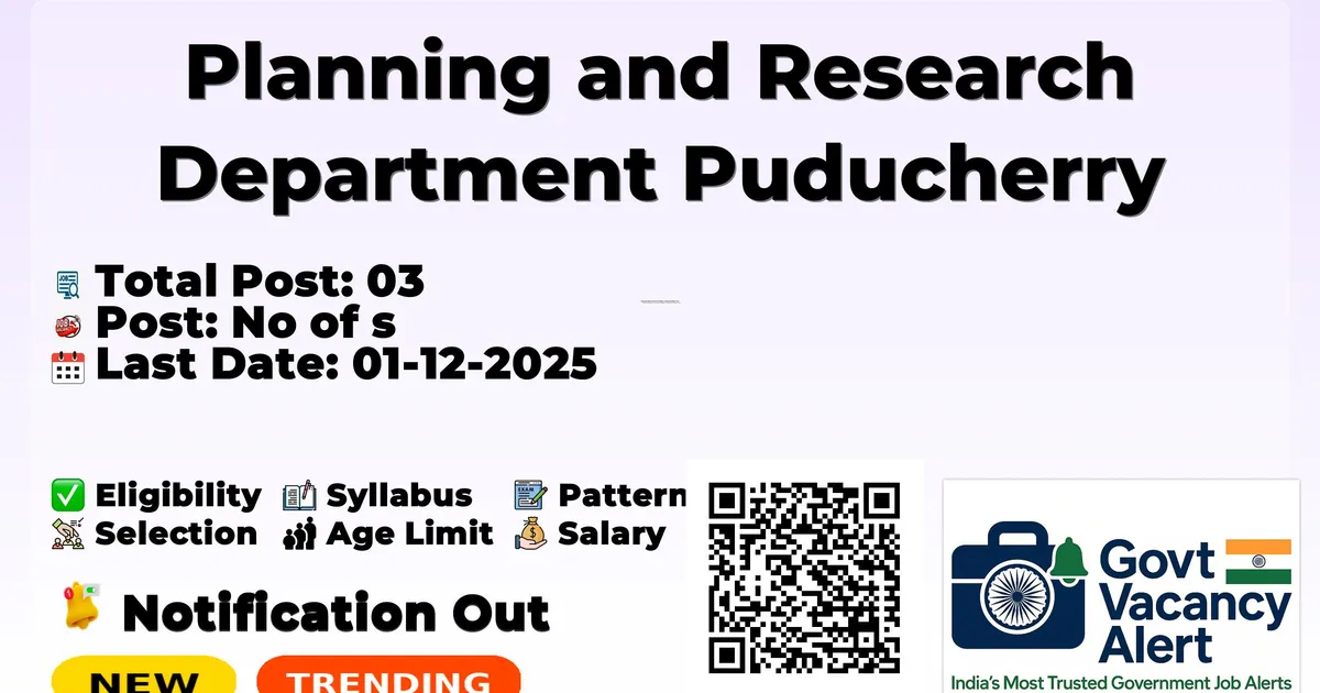 Planning and Research Department Puducherry has released an official notification for the recruitment of 03 Team Leader, Sector Expert Posts. Interested and eligible candidates can apply Online through the official Planning and Research Department Puducherry website. The last date to submit the application form is 01-12-2025. In this article, you’ll find the Planning and Research Department Puducherry Team Leader, Sector Expert Posts recruitment details, including eligibility criteria, age limit, salary structure, selection process, application steps, and direct links to the official notification and Online application form.