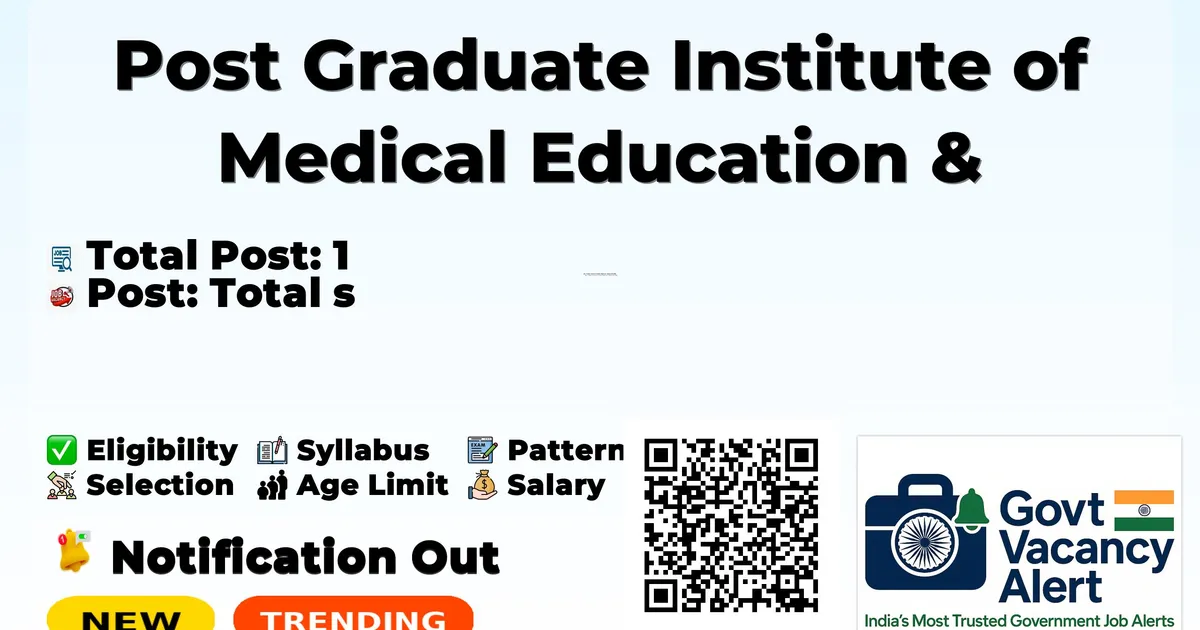 Post Graduate Institute of Medical Education & Research (PGIMER) has released an official notification for Walk-in Interview for 1 Junior Resident Posts. Eligible candidates can attend the Walk-in Interview on at the PGIMER office with original documents and self-attested copies.
