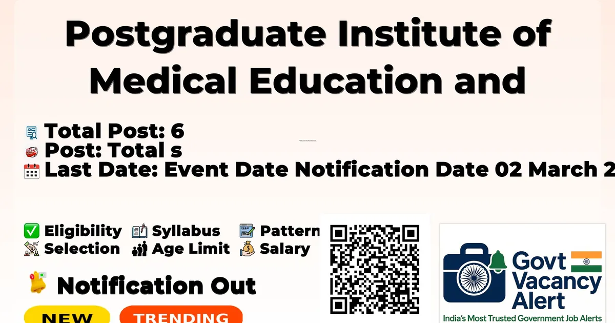 Postgraduate Institute of Medical Education and Research (PGIMER) Recruitment 2026: Postgraduate Institute of Medical Education and Research has released the official notification for 6 Project Positions posts, inviting applications from eligible candidates in Chandigarh. This recruitment provides an excellent opportunity for candidates seeking stable and well-paid government jobs. The last date to apply online is 12-03-2026, and candidates are strongly advised to complete their applications before the deadline. Below, you can find complete details of Project Positions Recruitment 2026, including vacancy breakdown, eligibility, age limit, salary, selection process, application procedure, and important links. Advertisement Company Name Postgraduate Institute of Medical Education and Research (PGIMER) Post Name Project Positions No of Posts 6 Salary Rs. 26800/- - 80000/- + HRA, as admissible Per Month Qualification MBBS, Post Graduate Degree, PhD, Graduate degree in life sciences, Graduation, Matriculation Last Date 12-03-2026 Apply Mode Online Job Type Contractual Trending Govt Jobs RRB 22000 Group D Online form 2026 IAF Agniveer New Recruitment 2026 DSSSB 911 AE, JE & More Online Form 2026 MCL 677 Various Vacancies Online Form 2026 MMRDA 235 AE, JE and More Posts Online Form 2026 Candidates who are interested in applying for the PGIMER Recruitment 2026 should first download and carefully read the official notification PDF. The notification contains complete details about vacancy distribution, eligibility criteria, age limit, stipend/salary, selection process, important dates, and application instructions. Reading the official document is important to ensure that you meet all requirements before submitting the application form. Download PGIMER Job 2026 Notification PDF Post Name Total Posts Project Research Scientist - II (Medical) 1 Project Research Scientist - II (Non-Medical) 1 Project Research Scientist - I (Non-Medical) 1 Project Technical Support - III 1 Data Entry Operator 1 Office Helper 1 Total 6 Project Research Scientist - II (Medical): MBBS with three years’ post qualification experience, OR MBBS with post graduate degree or any equivalent degree, including integrated PG degree OR MBBS with PhD. Project Research Scientist - II (Non-Medical): Post Graduate Degree, including the integrated PG degrees, with three years post qualification Experience or PhD. Desirable: Candidate with experience in clinical research (patient screening, enrolment and follow-up) especially multi-centric cohort study or clinical trial. Project Research Scientist - I (Non-Medical): Post Graduate Degree, including the integrated PG degrees. Desirable: Candidate with experience in developing, testing or maintaining web based electronic databases, digital solutions in clinical research. Project Technical Support - III: Three Years Graduate degree in life sciences + three Years post qualification experience or PG. Desirable: Candidate with experience in clinical research. Data Entry Operator: Graduation or above. Experience: At least 1 year experience in data entry and documentation of cohort studies or clinical trials. Office Helper: Matriculation or above. Experience: At least 1 year experience in handling biological samples. Please refer to the official notification for age limit details. Project Research Scientist - II (Medical): Rs. 80000/- + HRA, as admissible Per Month Project Research Scientist - II (Non-Medical): Rs. 67000/- + HRA, as admissible Per Month Project Research Scientist - I (Non-Medical): Rs. 56000/- + HRA, as admissible Per Month Project Technical Support - III: Rs. 28000/- + HRA, as admissible Per Month Data Entry Operator: Rs. 29200/- Per Month Office Helper: Rs. 26800/- Per Month Event Date Notification Date 02 March 2026 Last Date for Application 12 March 2026 Shortlisting Interview Candidates who meet the eligibility criteria can apply online for the PGIMER Various Posts Recruitment 2026. Applications must be submitted online on or before 12-03-2026. To apply directly, use the Apply Online link provided in the Important Links section. Alternatively, candidates may visit the official website of PGIMER to complete the application. Fill out the application form carefully with correct personal, educational, and contact details. Upload required documents such as photograph, signature, and certificates in the prescribed format. Pay the application fee online, if applicable. Review all details carefully before submitting the form. Take a printout or save a copy of the submitted application for future reference. Link Description Link Apply Link: Project Research Scientist - II (Medical) Click here Apply Link: Project Research Scientist - II (Non-Medical) Click here Apply Link: Project Research Scientist - I (Non-Medical) Click here Apply Link: Project Technical Support - III Click here Apply Link: Data Entry Operator Click here Apply Link: post of Office Helper Click here Official Notification PDF Click here Official Website Click here
