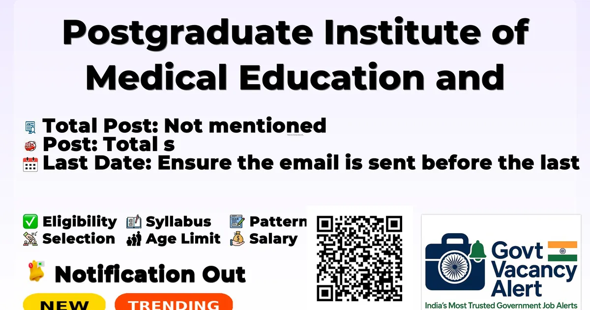 Postgraduate Institute of Medical Education and Research (PGIMER) Recruitment 2026: Postgraduate Institute of Medical Education and Research has released the official notification for Site Coordinator posts, inviting applications from eligible candidates. This recruitment provides an excellent opportunity for candidates seeking research jobs.