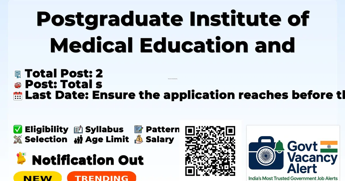 Postgraduate Institute of Medical Education and Research (PGIMER) has released an official notification for the recruitment of 2 Data Analyst Posts. Interested and eligible candidates can apply Offline by sending the application form to the official address. The last date to submit the application is 11-03-2026.