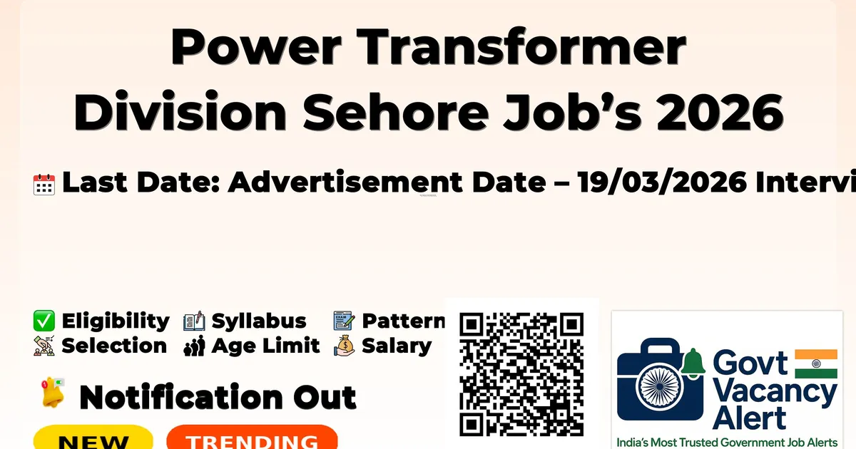 Power Transformer Division Sehore Job’s 2026