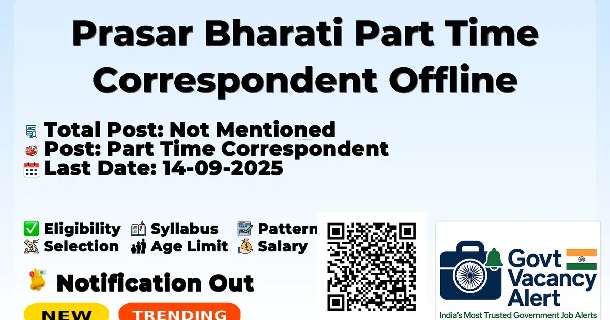 The Prasar Bharati Part Time Correspondent Recruitment 2025 Notification PDF has been released on 01-09-2025 at newsonair.gov.in. Check the complete job details, vacancy, age limit, application fee, selection process and how to apply from the article. You can Check all Latest Sarkari Result Updates of All Central Government Jobs and State Government Jobs.