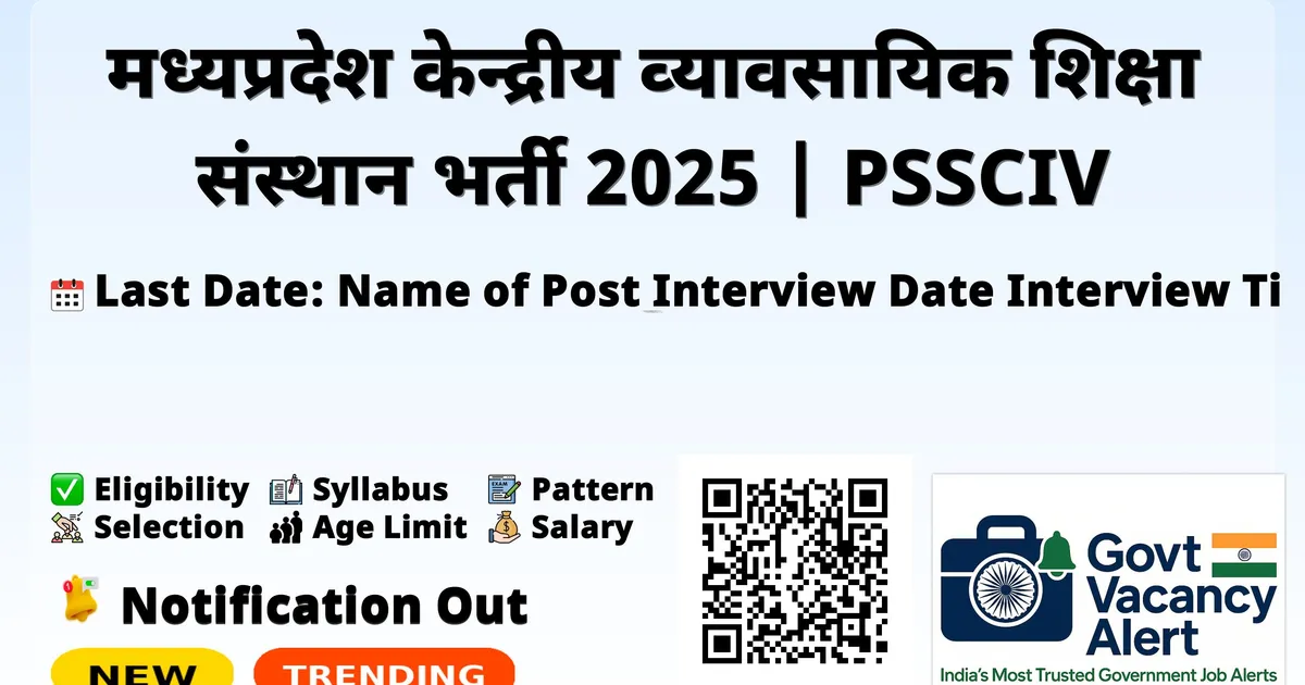 मध्यप्रदेश केन्द्रीय व्यावसायिक शिक्षा संस्थान भर्ती 2025 | PSSCIVE Bhopal Recruitment 2025