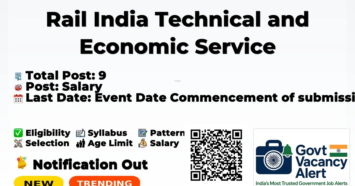 Company Name Rail India Technical and Economic Service Post Name Individual Consultants No of Posts 9 Salary Rs. 85,000/- - Rs. 1,60,000/- Per Month Qualification Degree in Civil Engineering, Post Graduate Degree in Civil Engineering, Master in Structural Engineering Last Date 10-03-2026 Apply Mode Online Job Type Contract