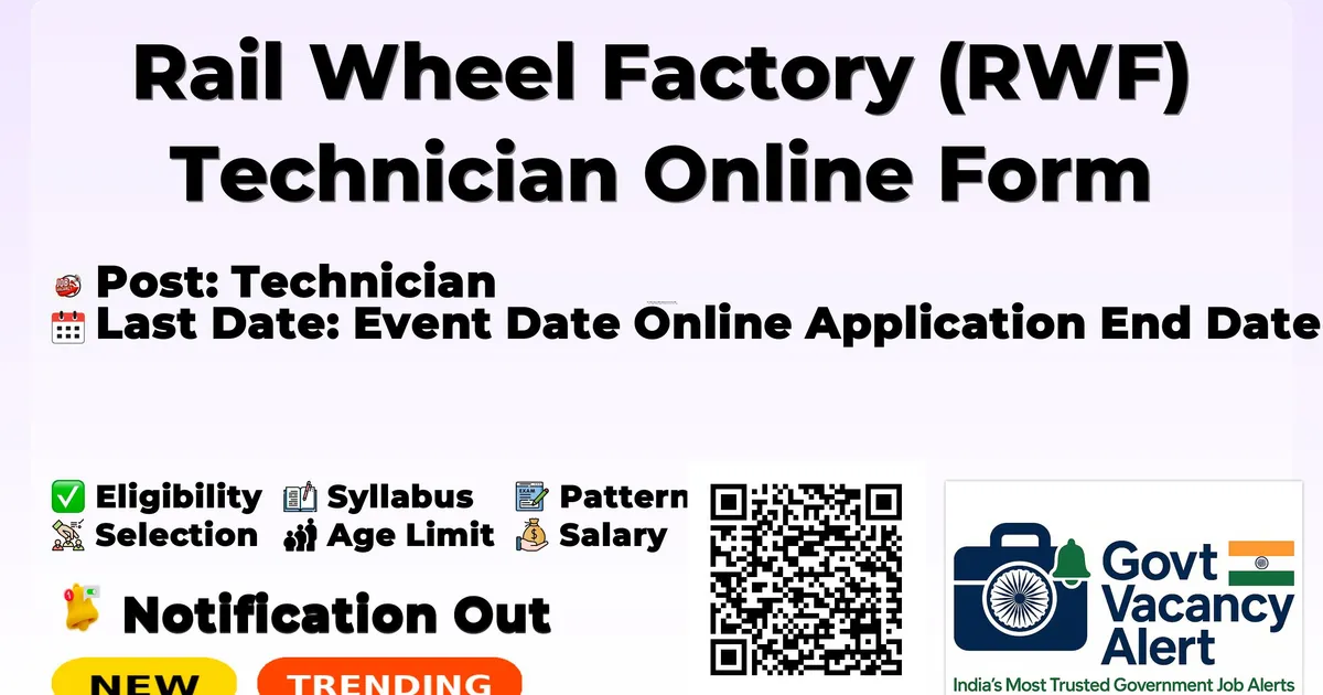 Details Information Organization Name Rail Wheel Factory (RWF) Post Name Technician Total Vacancies 21 Posts Salary/Pay Scale As per organization norms (Check official notification) Educational Qualification 10TH Application End Date 16-12-2025 Application Mode Online Official Website rwf.indianrailways.gov.in