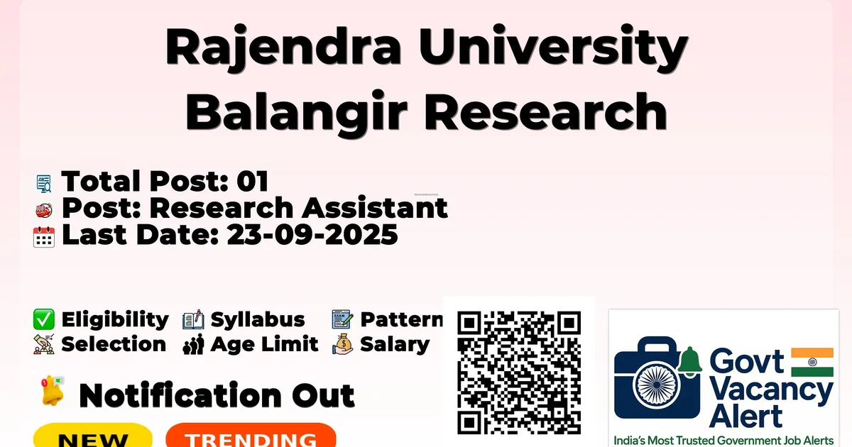 The Rajendra University Balangir Research Assistant Recruitment 2025 Notification PDF has been released on 11-09-2025 at balangir.odisha.gov.in. Check the complete job details, vacancy, age limit, application fee, selection process and how to apply from the article. You can Check all Latest Sarkari Result Updates of All Central Government Jobs and State Government Jobs.
