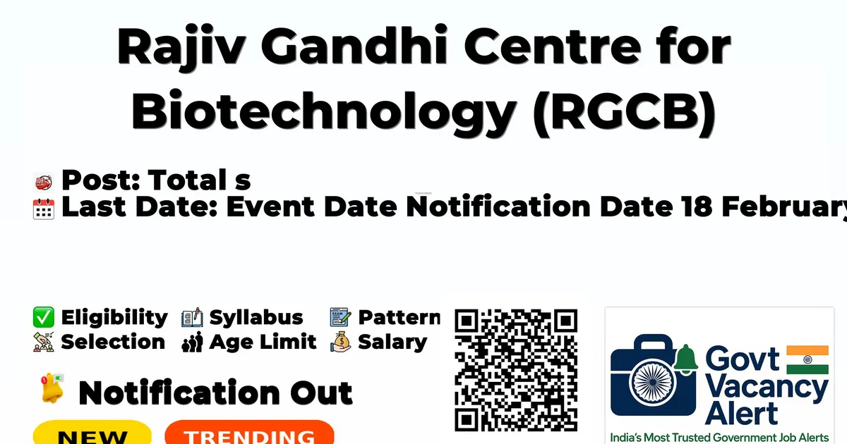 Rajiv Gandhi Centre for Biotechnology (RGCB) has released an official notification for the recruitment of 31 Laboratory Technologist Intern Posts. Interested and eligible candidates can apply Online through the official RGCB website. The last date to submit the application form is 15-03-2026.