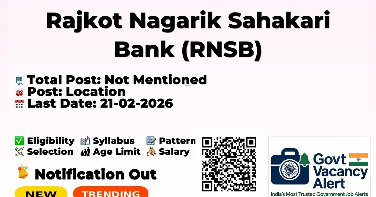 Company Name Rajkot Nagarik Sahakari Bank (RNSB) Post Name Apprentice (Peon) No of Posts Not Mentioned Qualification Any Graduate Age Limit 30 years Start Date for Apply Online 14-02-2026 Last Date for Apply Online 21-02-2026 Official Website https://rnsb.bank.in/