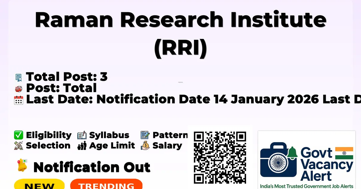 Raman Research Institute (RRI) has released an official notification for the recruitment of 03 Research Assistant Posts. Interested and eligible candidates can apply Online through the official RRI website. The last date to submit the application form is 13-02-2026. In this article, you’ll find the RRI Research Assistant Posts recruitment details, including eligibility criteria, age limit, salary structure, selection process, application steps, and direct links to the official notification and Online application form. Trending Govt Jobs Bank of Maharashtra 600 Apprentice Online form 2026 RBI 572 Office Attendant Online Form 2026 IOCL Western Region 405 Apprentice Online Form 2026 RRB 22000 Group D Online form 2026 Indian Navy 260 SSC Officer Online Form 2026 Advertisement Company Name Raman Research Institute (RRI) Post Name Research Assistant No of Posts 3 Salary Rs. 31,000/- plus HRA per month Qualification M.Sc./M.Tech or B.E./B.Tech. Age Limit 35 years Last Date 13/02/2026 Advt No 02/2026 Official Website www.rri.res.in Free Online Mock Tests View all Railway NTPC Mock Test Attempt Now IBPS Clerk Mock Test Attempt Now SSC CHSL Mock Test Attempt Now View All Mock Tests Post Name Total Research Assistant 3 Essential Qualification: M.Sc./M.Tech or B.E./B.Tech in any field with some exposure to soft condensed matter research. Desirable Qualification: Experimental work experience in a lab in exploring biopolymers, surfactant and colloidal systems. Experience in synthesis of large-scale colloidal particles. Familiarity with bright field, fluorescence and confocal microscopy, working experience of designing small electronic circuits proficiency with programming languages (like Matlab, Python etc.). A consolidated remuneration of Rs. 31,000/- plus HRA per month will be paid to the selected candidates. The upper limit is 35 years, as on the last date for closing of applications. Age relaxation will be applicable as per Govt., of India rules for the candidates belonging to SC/ST/OBC/PWD categories. Notification Date 14 January 2026 Last Date for Receipt of Applications 13 February 2026 Shortlisted candidates will be requested to appear for an online interview via Zoom or suitable other online platforms. No TA/DA will be paid for attending the interviews. Merely fulfilling the essential and desired qualifications will not entitle an applicant to be called for an interview. The institute reserves the right to restrict the number of candidates for test/ interview to a reasonable limit, on the basis of relevant qualification and experience higher than the minimum prescribed in the advertisement. Candidate should be self-driven, motivated and have leadership skills to manage the personnel working with him. The institute reserves the right to relax any of the above requirements in exceptional cases. The Institute reserves the right, not to fill the post herein advertised. Canvassing in any form shall disqualify the candidate. Interested candidates can apply by filling up an online form. In the online form applicant will be required to upload PDFs/Images of all the relevant documents, including: 1. Scanned colour copies of Educational Certificates and mark sheets. 2. Curriculum Vitae. Should include detailed a description of the research projects done. 3. Statement of purpose (500 words max), as to what motivates the applicant to apply for the above post and why the applicant is the appropriate choice for the opening? 4. A recent passport size photograph and image of candidate’s signature. 5. Each applicant would need to provide references of two individuals whom the Institute could contact for referral letters (if needed). In case of any queries/help, please contact [email protected] Link to the application: https://careers.rri.res.in/rrijobs/job_listing.php Incomplete applications, particularly those without a Statement of Purpose, will not be considered. Apply Link: Click Here Official Notification PDF: Click Here Official Website: Click Here Join Arattai Channel: Click Here Join Telegram Channel: Click Here Join WhatsApp Channel: Click Here Sarkari Result: Click Here Download Mobile App: Click Here