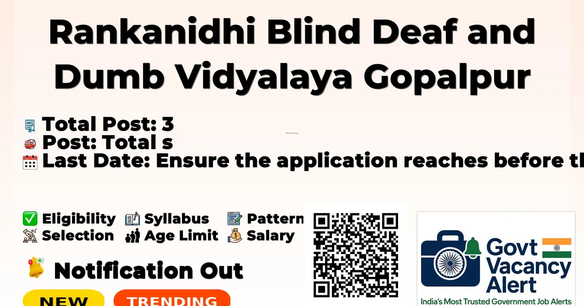 Candidates should download and read the Rankanidhi Blind Deaf and Dumb Vidyalaya Gopalpur Jobs 2026 notification PDF carefully to check vacancy details, eligibility, age limit, and application instructions. The notification also includes important dates and selection process details. The direct download link is available in the Important Links section below.