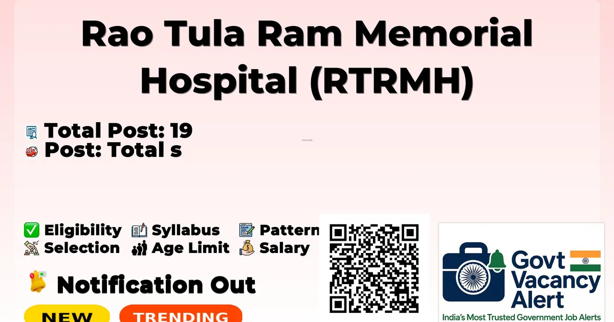 Rao Tula Ram Memorial Hospital (RTRMH) Senior Resident Notification 2026 has been released on the official website of RTRMH. A total of 19 vacancies have been announced through the RTRMH Senior Resident Recruitment 2026.