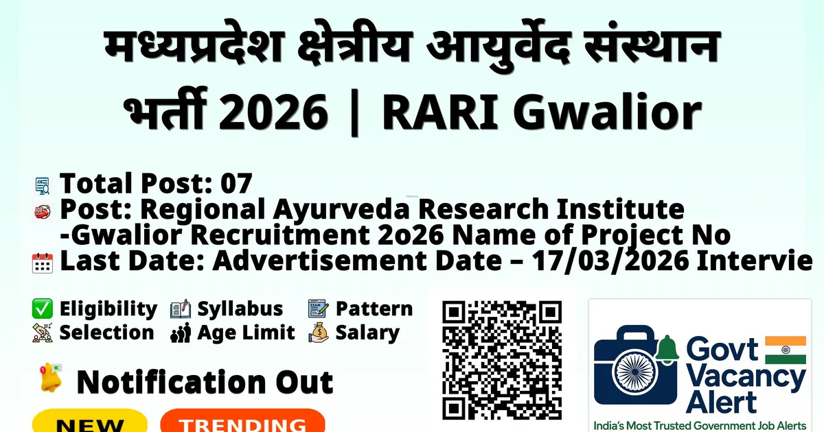 मध्यप्रदेश क्षेत्रीय आयुर्वेद संस्थान भर्ती 2026 | RARI Gwalior Recruitment 2026