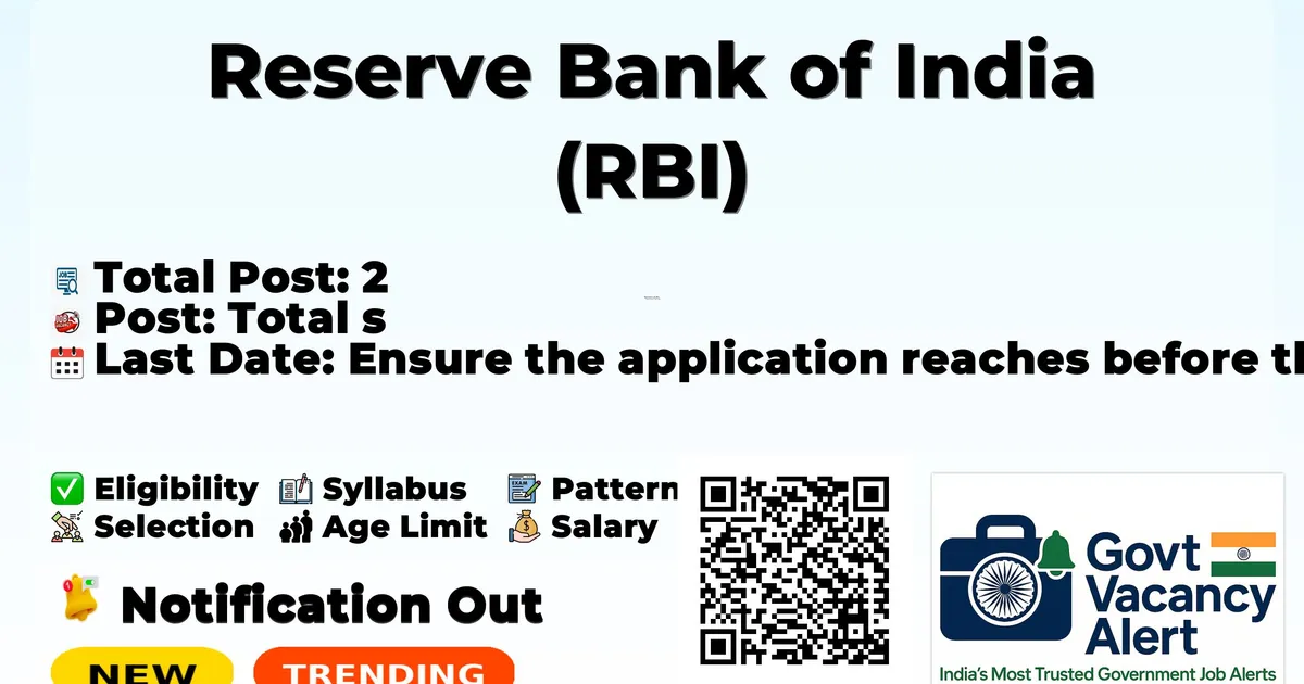 Company Name Reserve Bank of India (RBI) Post Name Medical Consultant No of Posts 2 Salary ₹1,000/- per hour Qualification MBBS Last Date 20 April 2026 Apply Mode Offline Job Type Contract